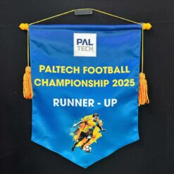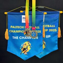 Kết cấu: Cờ đi kèm đũa nhựa và nút treo chắc chắn, dễ lắp đặt và trưng bày trên tường, sảnh lễ tân, hoặc tại khu vực tổ chức sự kiện thể thao. Tạo điểm nhấn mạnh mẽ về thương hiệu và tinh thần đoàn kết.