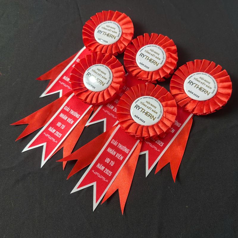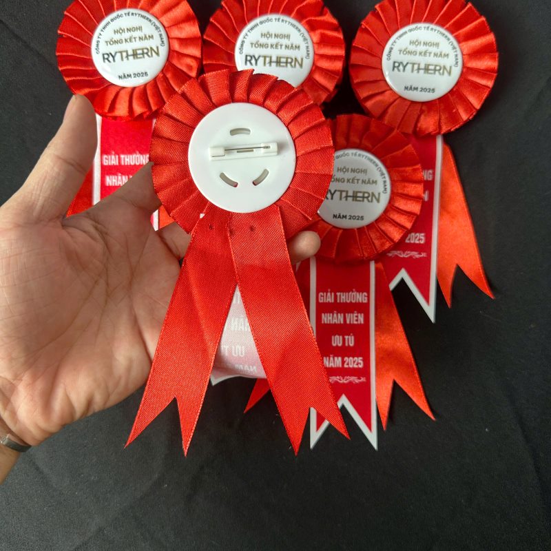 Sản phẩm có thể in nội dung theo yêu cầu như “Khen thưởng cuối năm”, “Nhân viên xuất sắc”, “Cán bộ tiêu biểu”, tên đơn vị hoặc logo chương trình. Với chi phí hợp lý, hoa cài áo là lựa chọn được nhiều ban tổ chức ưu tiên cho các buổi khen thưởng quy mô vừa và lớn.