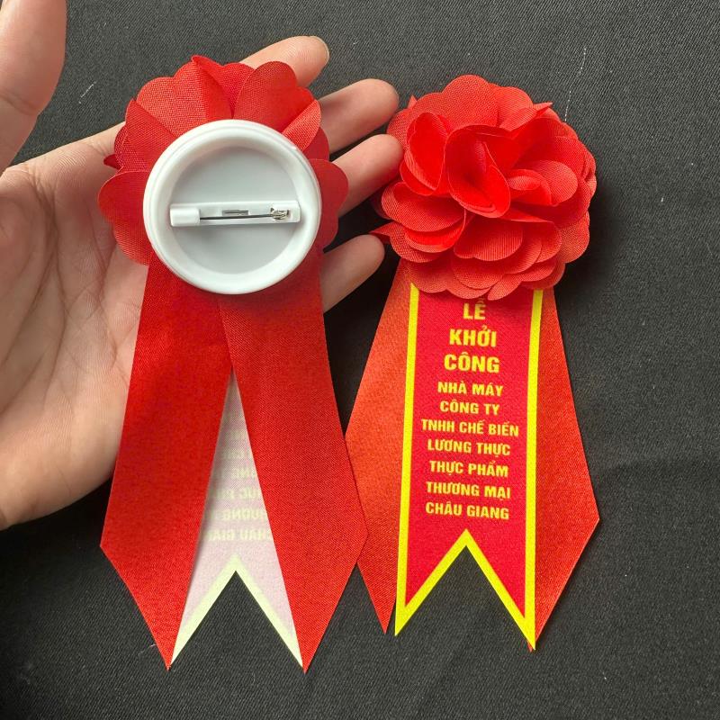 Sản phẩm có thể in nội dung theo yêu cầu như tên dự án, tên công ty, khẩu hiệu, logo chủ đầu tư hoặc thông tin lễ khởi công. Với chi phí hợp lý, hoa cài áo là lựa chọn phổ biến cho các buổi lễ có quy mô từ nhỏ đến lớn.