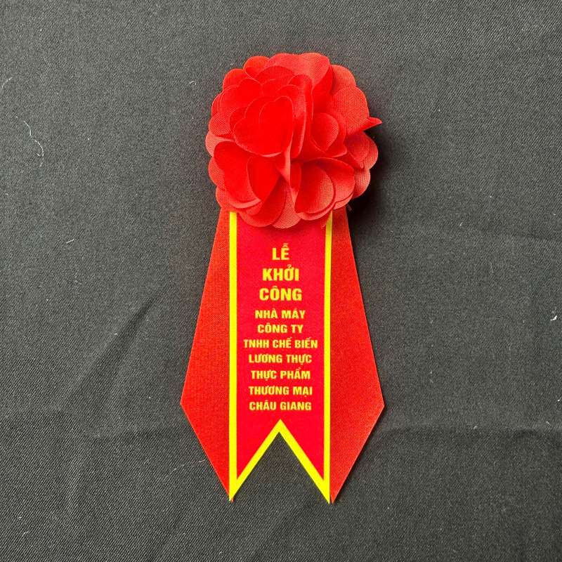 Hoa cài lễ khởi công nhà máy – Hoa cài áo in nội dung giá tốt