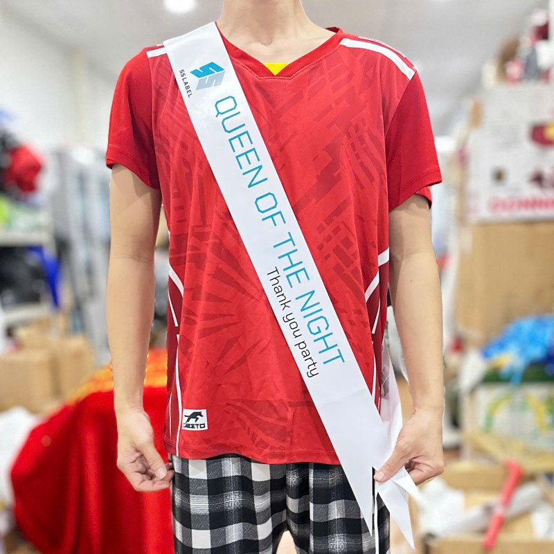 Sash là dải băng đeo chéo qua vai hoặc trước ngực, trên đó in nội dung như tên chương trình, chức danh, thông điệp hoặc logo thương hiệu. Việc in theo yêu cầu cho phép cá nhân và đơn vị tổ chức chủ động về nội dung, màu sắc và kích thước, phù hợp với từng mục đích sử dụng cụ thể.
